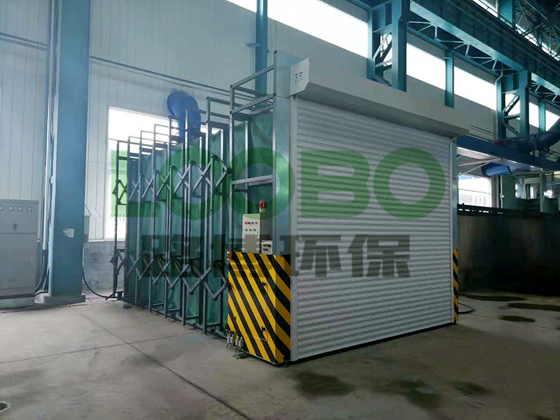 鍛壓廠鍛造壓機(jī)火焰切割機(jī)橫梁伸縮有效行程5m,升降有效行程3m,其長(zhǎng)*寬*高=6.8*6*4.1m,本方案設(shè)計(jì)使用可滑動(dòng)房進(jìn)行煙塵收集,房體長(zhǎng)4米,寬4.5米,高4米,可滑動(dòng)距離10米,配獨(dú)立驅(qū)動(dòng)系統(tǒng),隨切割機(jī)一起動(dòng)作。系統(tǒng)設(shè)計(jì)風(fēng)量22000m3/h,采用一臺(tái)高效濾筒除塵器,