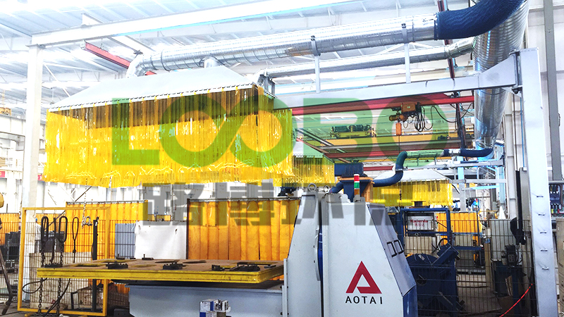 現(xiàn)場所需除塵區(qū)域共10余個操作工位,每個操作工位配置一個旋轉(zhuǎn)吸塵罩口,搭配集塵軟簾可針對煙氣粉塵的發(fā)生點更好的收集處理,除塵系統(tǒng)選用大風量濾筒除塵器作為凈化系統(tǒng)的主設(shè)備,凈化效果更高。