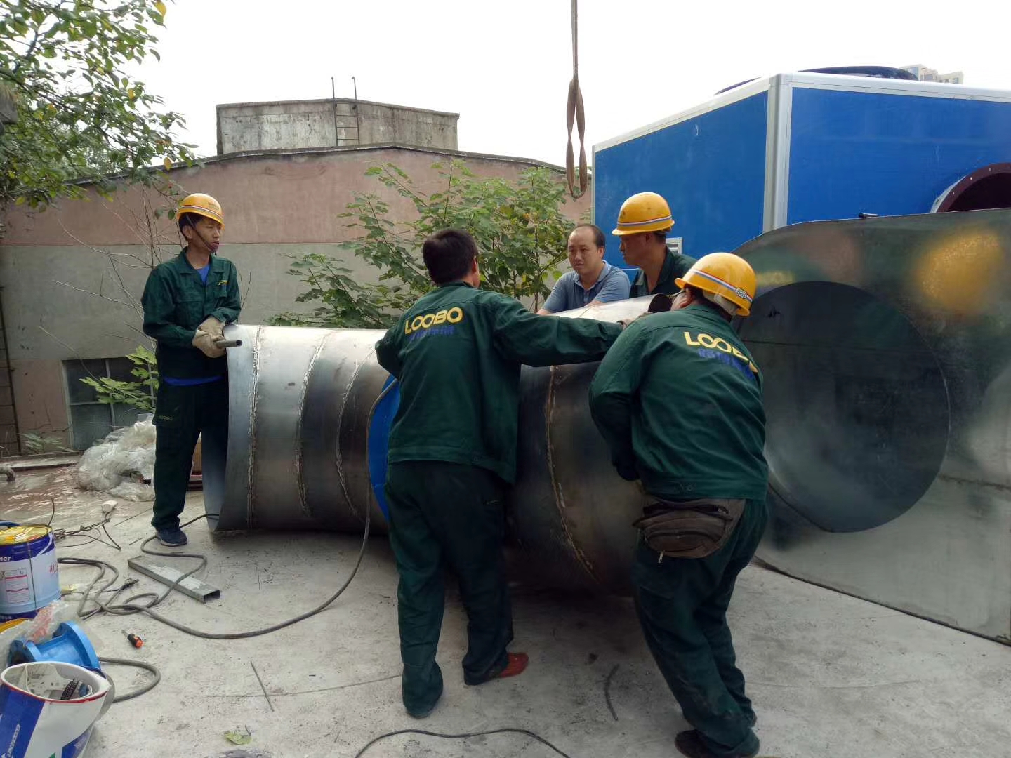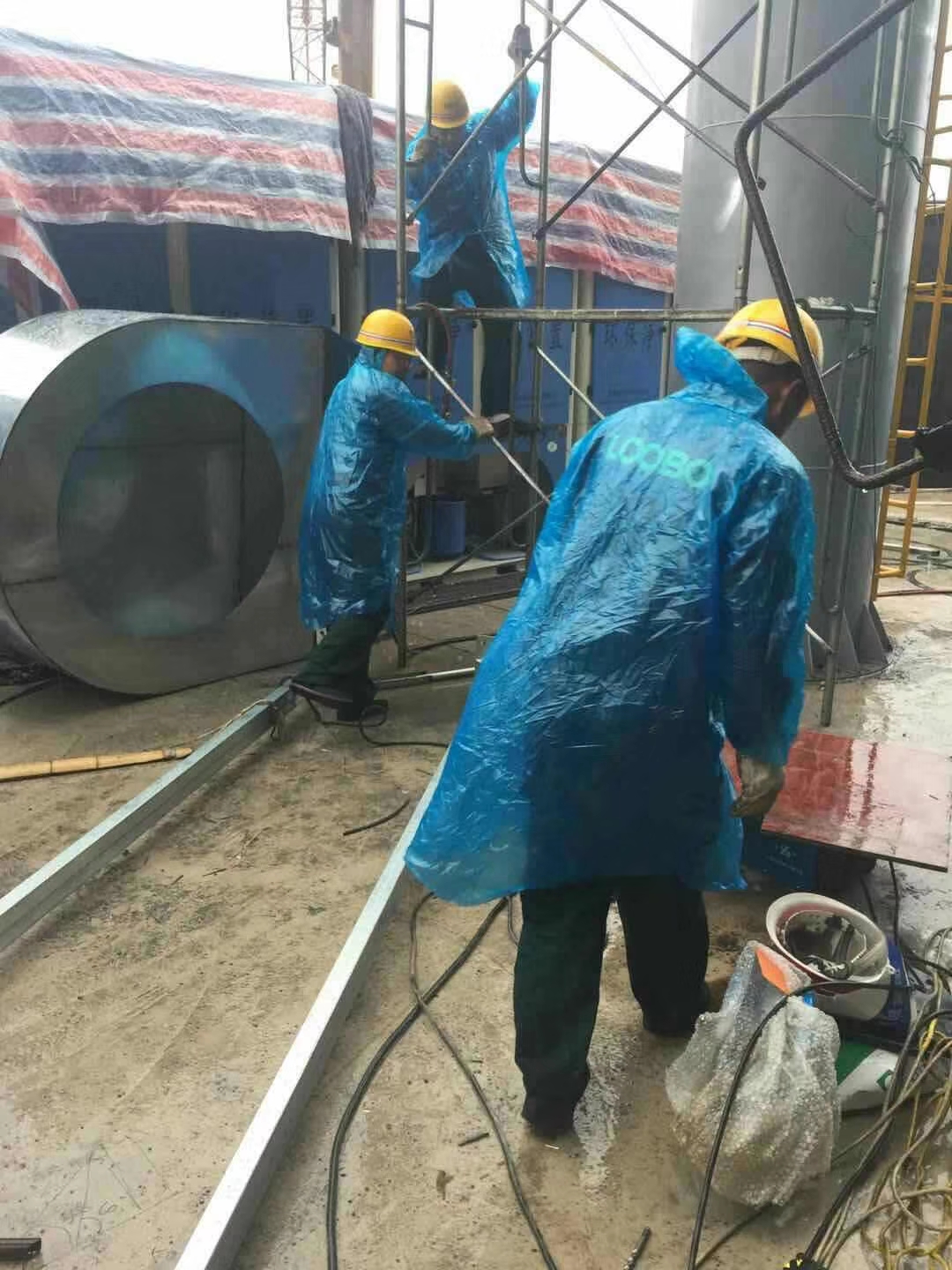 落砂房除塵項(xiàng)目施工前期,路博環(huán)保施工人員爭(zhēng)分奪秒,冒雨作業(yè)